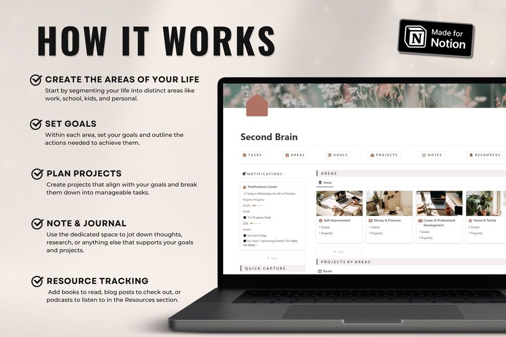 Are you juggling tasks, projects, and goals like a pro but feeling like a rookie? Meet Notion Second Brain—your all-in-one digital dashboard designed to declutter your life and supercharge your productivity.
