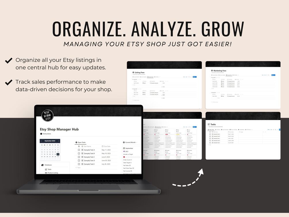 Take control of your Etsy shop's success with this all-in-one Notion management system. Created to help you streamline operations, maximize profitability, and enable business growth.